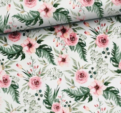 Úplet potisk šípkové růže s listy na zaprášené bílé