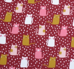 Teplákovina počesaná potisk kočičky na vínové, BIO