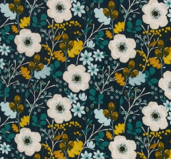 Teplákovina potisk podzimní kvítí na petrolejové, lehce počesaná