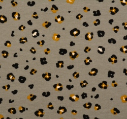 Teplákovina počesaná potisk leopardí vzor na šedé, BIO