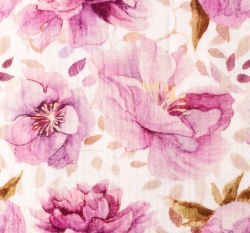 Dvojitá gázovina / mušelín růžové akvarelové květy na bílé