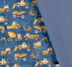 Softshell stavební vozidla na modré indigo