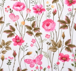 Úplet potisk rozkvetlá růžová louka na bílé
