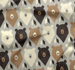 Teplákovina potisk hlavy medvídků na krémové