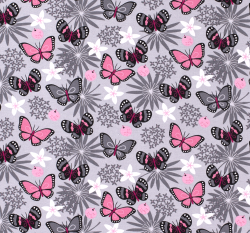Úplet potisk růžoví a šedí motýlci na světle šedé
