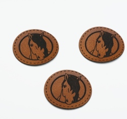 Štítek na oblečení kulatý "kůň", koženkový, hladký povrch