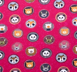 Úplet potisk medailonky zvířátek na sytě růžové
