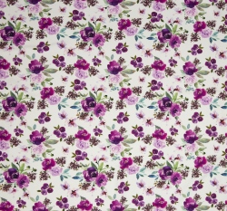 Úplet potisk fialové květy na bílé
