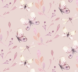 Teplákovina potisk motýli mezi větvičkami na růžové