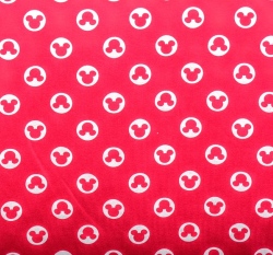 Teplákovina potisk hlavička myšky v bílém kroužku na malinově růžové
