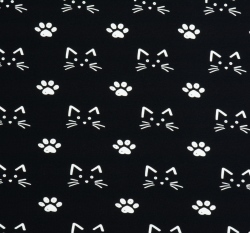 Úplet potisk kreslené kočičky mezi tlapkami na černé