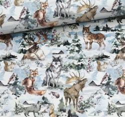 Teplákovina potisk lesní zvířátka na zimní louce