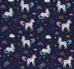 Softshell potisk pohádkoví jednorožci na tmavě modré