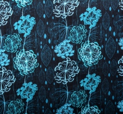 Teplákovina potisk liánové pampelišky do modra na černé