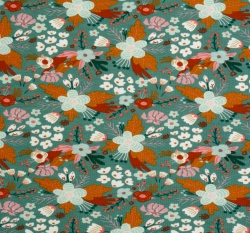 Úplet potisk květiny do modra na modře azurové, BIO
