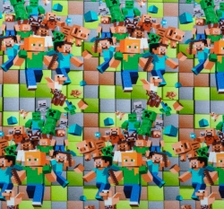 Teplákovina potisk kostičky a panáčci ve stavebnici