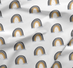Bambusová viskóza potisk okrovo-antracitová duha s kapkami deště