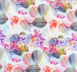 Teplákovina koláž s listy a květy do fialové