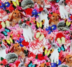 Úplet potisk digitální zajíčci, ježečci, motýlci a květiny