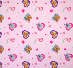 Úplet potisk přátelé z Tlapkové patroly mezi srdíčky a hvězdičkami na růžové