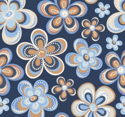 Dvojitá gázovina / mušelín retro květy na námořnické modré