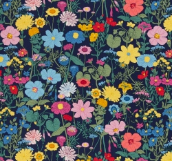 Úplet potisk vintage luční kvítí na tmavě modré