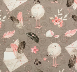 Úplet obálka s pírky, ptáček na šedé