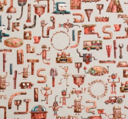 Úplet potisk roboti ze šrotu na světle šedé, BIO