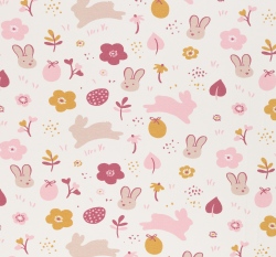 Úplet potisk velikonoční zajíček a vajíčka mezi kytičkami na smetanové