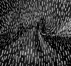 Teplákovina potisk zajímavé puntíkové čárky na černé