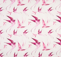 Úplet z organické bavlny potisk fuchsiové vlaštovky na bílé