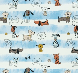 Úplet potisk pejsci na modro-bílých proužcích