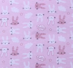 Bavlněný oboulícní úplet zajíčci na světle růžové