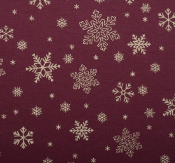 Teplákovina potisk třpytivé sněhové vločky na bordové