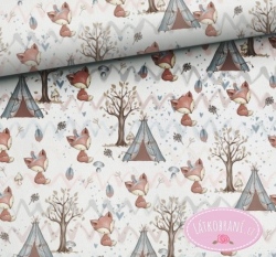 Bavlněné plátno liška u týpí na bílé