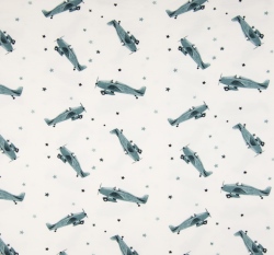 Úplet potisk modrá letadélka mezi hvězdičkami na bílé