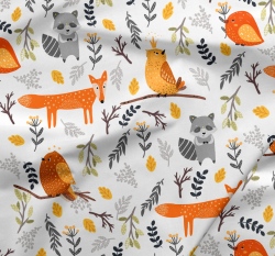 Teplákovina potisk zvířátka mezi větvičkami na bílé