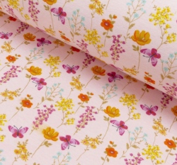 Warmkeeper motýlci mezi kvítky na světlé broskvové