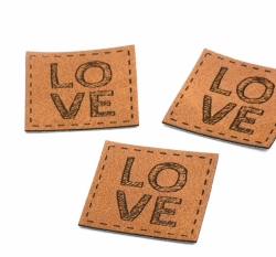 Štítek na oblečení "LOVE", koženkový, hladký povrch