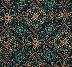 Teplákovina potisk zářivé ornamenty na modré
