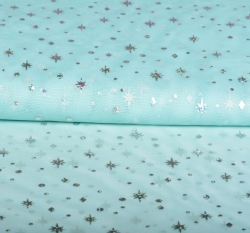 Jemný světle modrý tyl s třpytivými aplikacemi