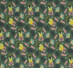 Teplákovina potisk kvítí na olivově zelené