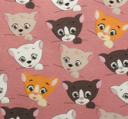 Bavlněný úplet vykukující koťátka na růžové