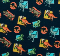 Úplet potisk dinosauři z Jurského světa na tmavě modré