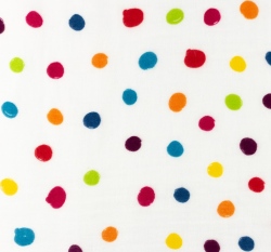 Dvojitá gázovina / mušelín nepravidelné barevné puntíky na bílé