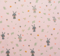 Bavlněný flanel potisk zajíčci na světle růžové