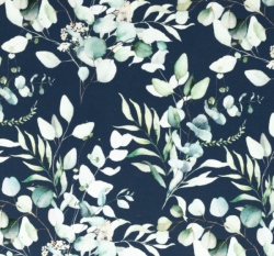Teplákovina potisk eukalyptové listy na tmavě modré