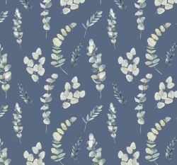 Viskózový úplet větvičky eukalyptu na tmavě modré jeans
