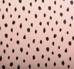 Teplákovina počesaná nepravidelné černé puntíky na růžové, BIO