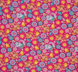 Úplet potisk Tlapková patrola mezi růžovými a modrými květinami
